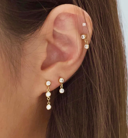 Crystal Drop Earrings, 14k thick gold plate on sterling silver