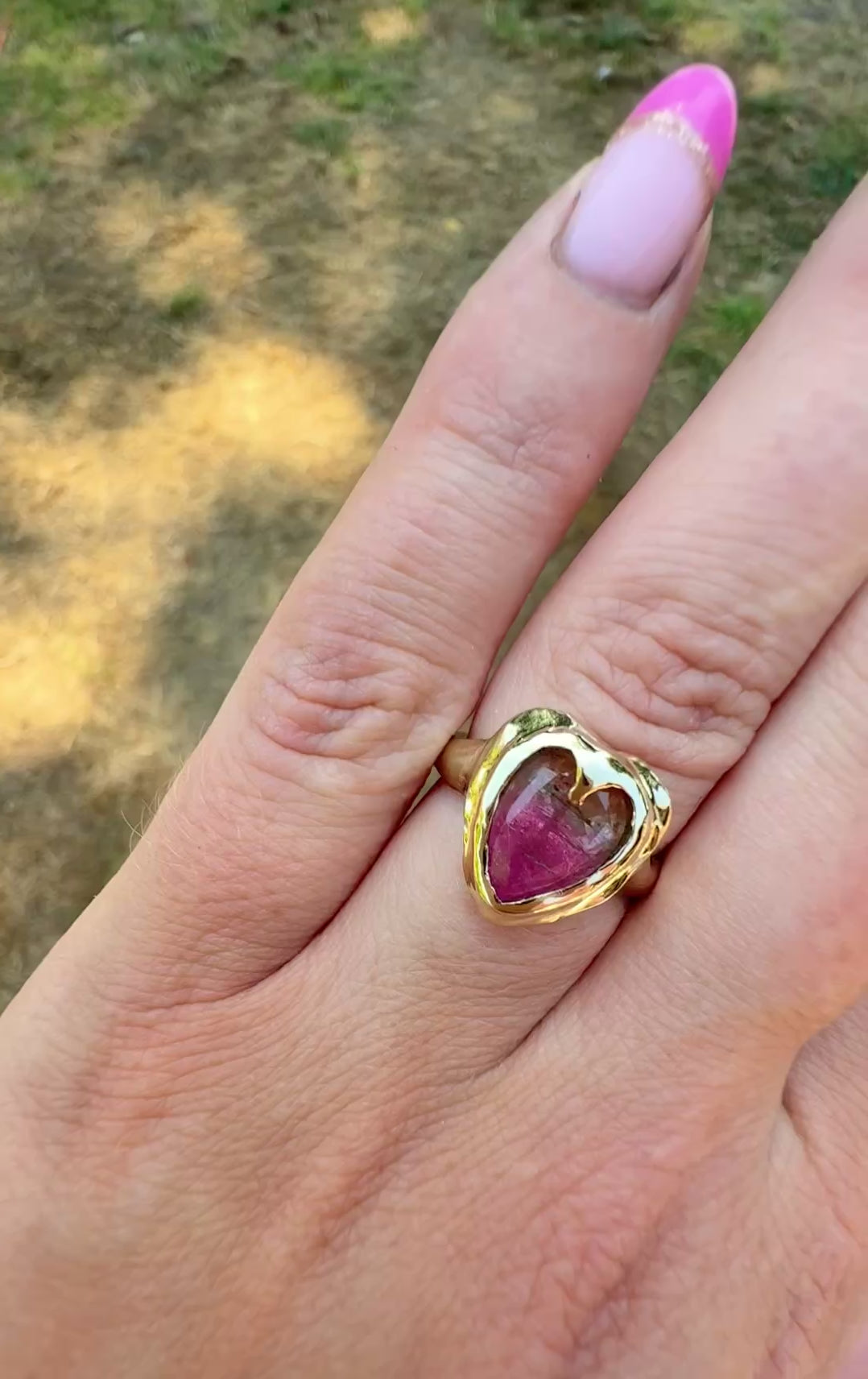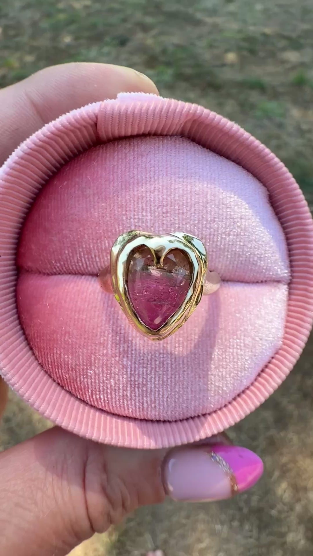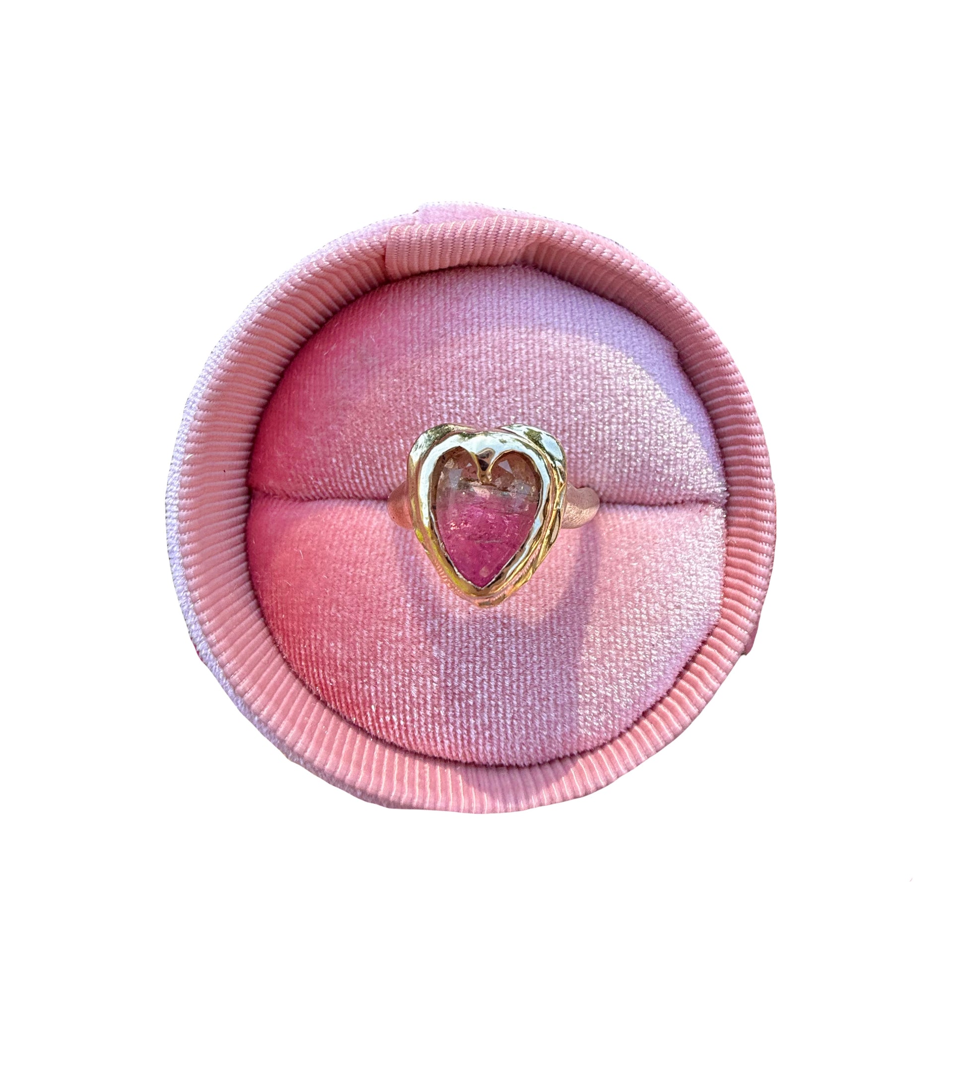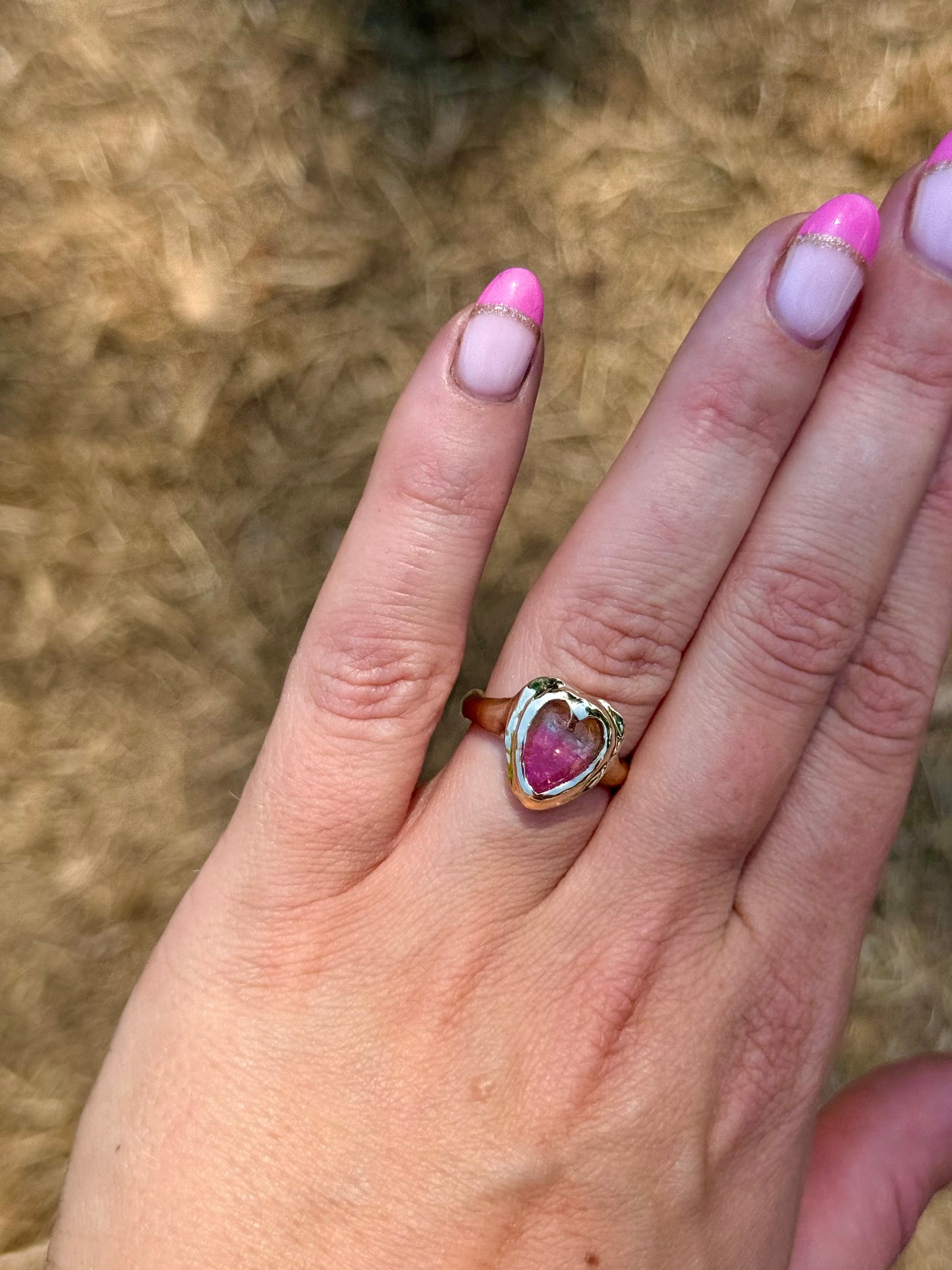 Say hello to our new Amoura ring, featuring a natural ombré heart cut 10x9mm Tourmaline stone that is the prettiest colour of greens and pinks. carefully handset into chunky, solid 9ct yellow gold. Can come in a size, K (5.5), L (6), M (6.5), and N (7)