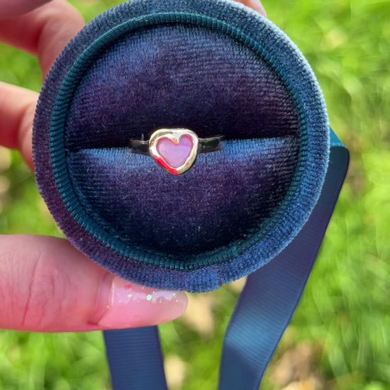 Introducing our One-Off Wonder Candy Ring Set in 9ct solid yellow gold, the Candy Heart ring shines with a gorgeous dusty pink Aussie opal at its centre. The opal’s stunning play of colour pops beautifully against the rich gold, making this ring such a sweet piece that we just love.