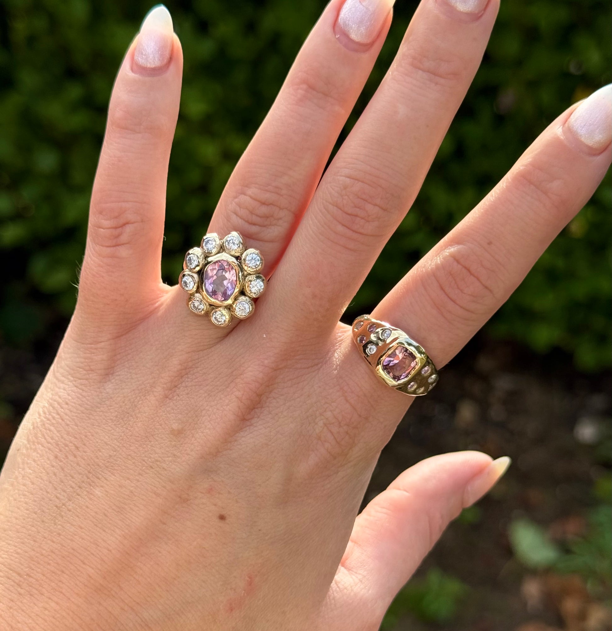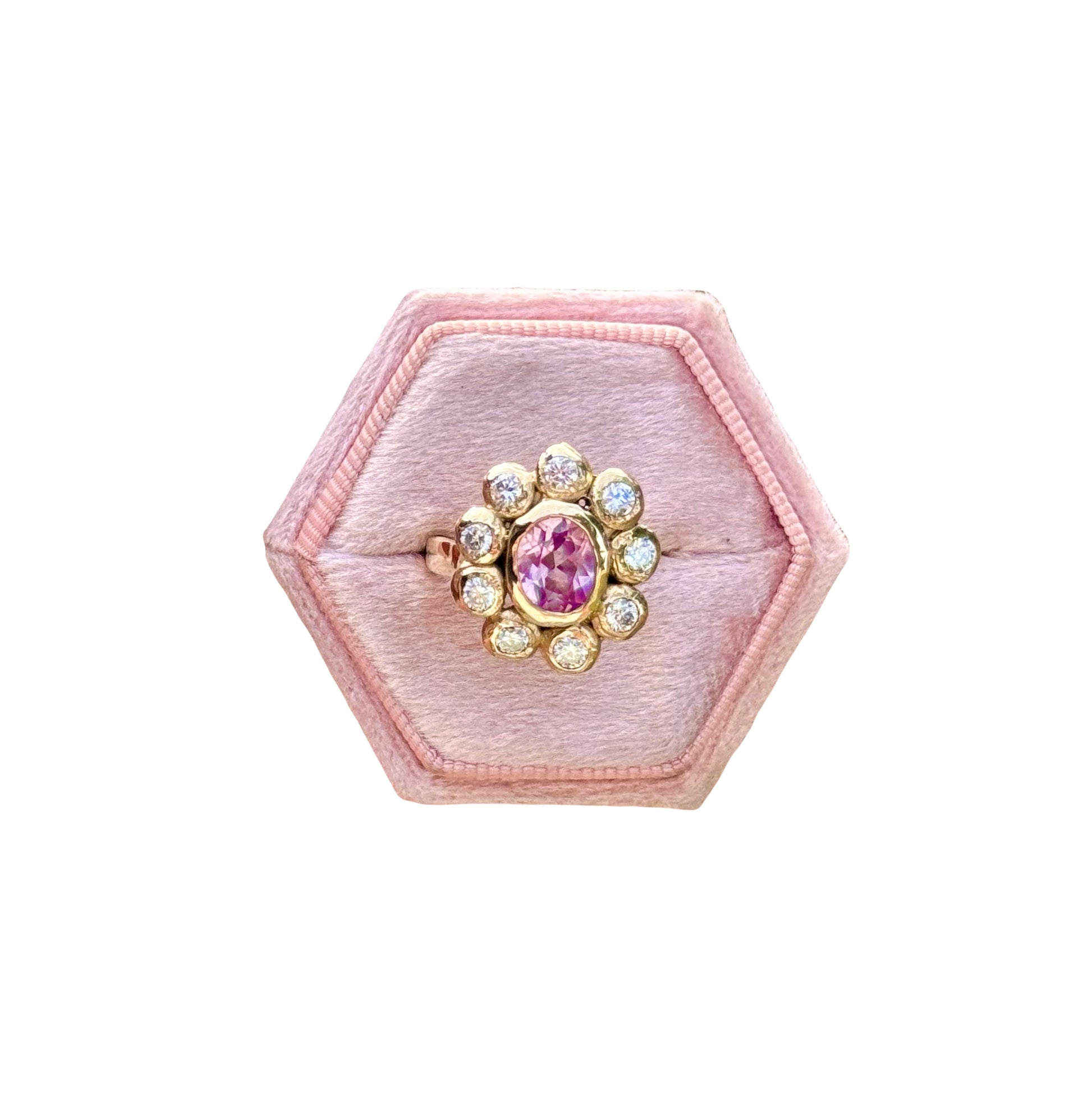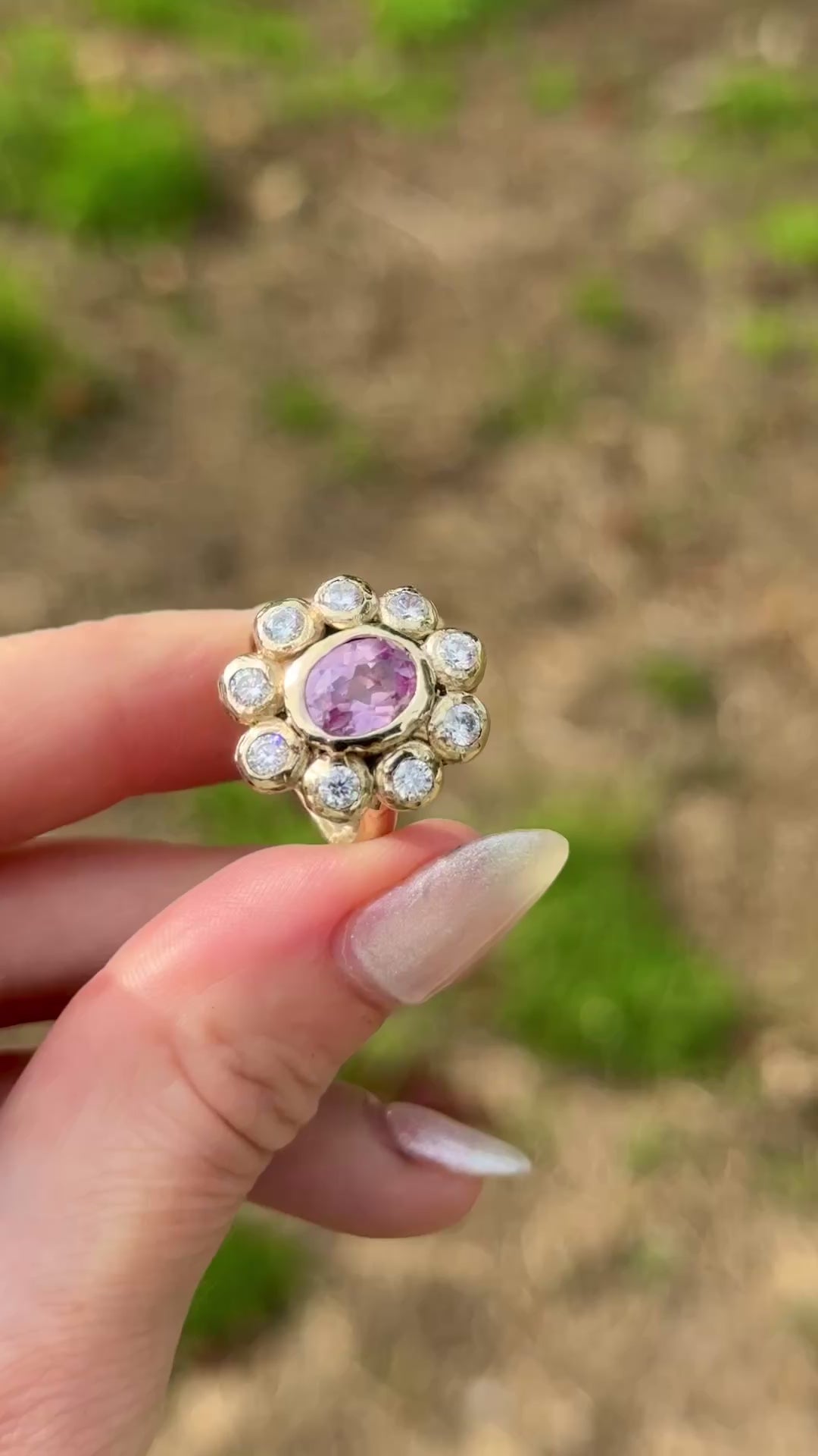 Introducing the made to order Good As Gold Ring, this beautiful design showcases a soft pale pink sapphire surrounded dazzling Diamonds. Elegant, timeless, and full of charm, it’s a piece we adore—and we’re so excited to welcome it to our made-to-order collection. In your choice of 9ct, 14ct and 18ct yellow gold. If you would like natural diamonds please reach out to us, as we can do this with all our pieces.