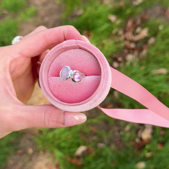 The Hubba Bubba Ring is a super unique sterling silver piece, set in a toi et moi style with two beautiful pink stones, baby pink Australian opal and a smooth cabochon rose quartz. Soft, dreamy, and full of charm, this ring is all about sweet tones and standout design. There's nothing else quite like it.