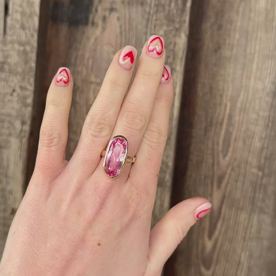 Our made to order Marvellous Morganite Ring In solid 9ct yellow gold is a true statement piece and we are totally in love with this ring. The Morganite changes into different tones of pinks in different lights and looks amazing against the yellow gold. We have the one stone available and can make into a ring any size you require, just let us know what size you would like. The ring will take 4 weeks making time.