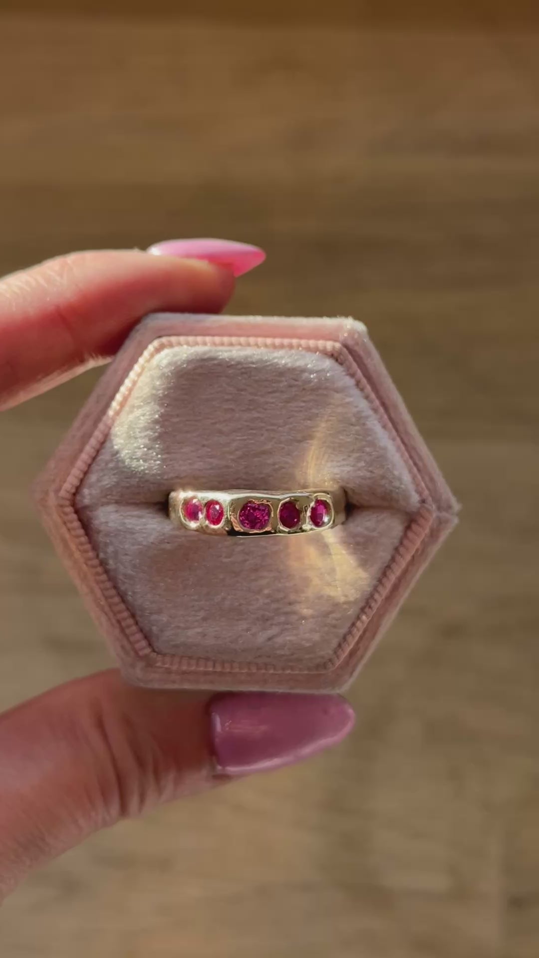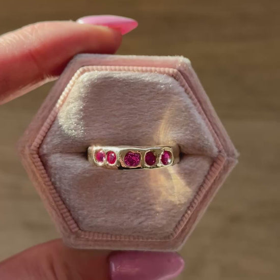 Introducing our made-to-order Girly Girl ring, a dazzling showstopper! Crafted from solid 9ct yellow gold, Rose or sterling silver. This lovely ring design is adorned with beautiful bright pink natural Sapphires. All gold rings come with a certified hallmark for authenticity.