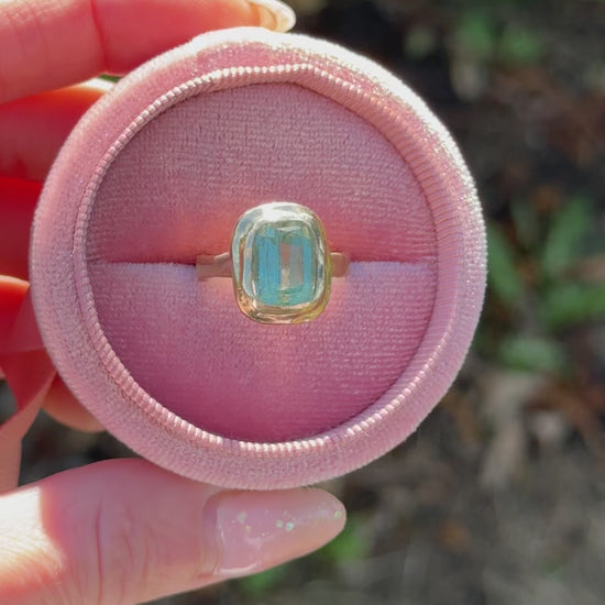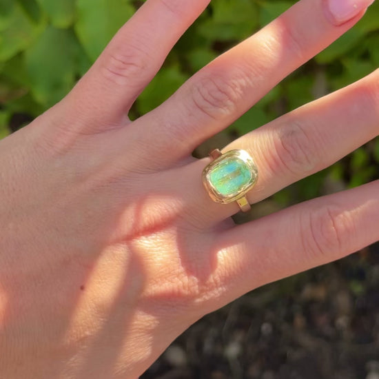 Introducing our Meadow Ring Set in 9ct solid yellow gold, this ring features a large, radiant mint green tourmaline that brings a cool, calming touch to any look. Elegant and effortlessly beautiful.